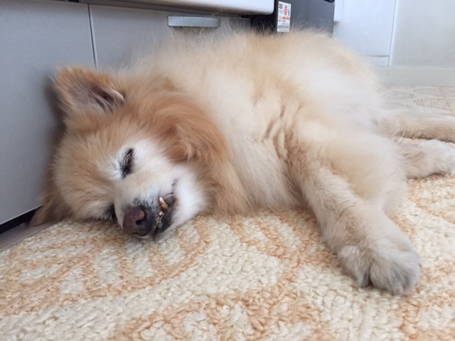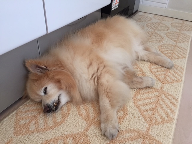 起きたばかりは、私もぼーっとしてて、まずコーヒーを入れるのですが、この方、キッチンに寝てらっしゃるので。。。
