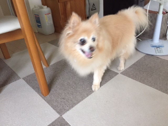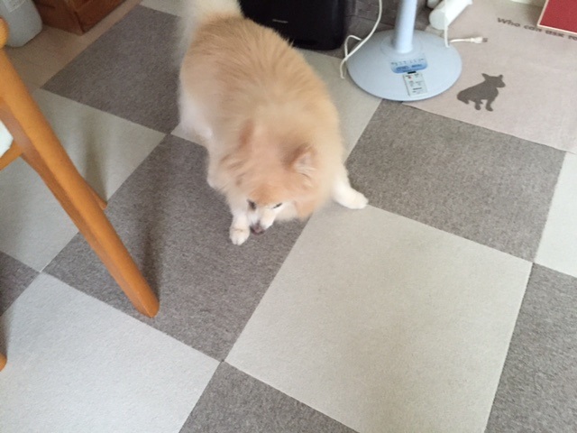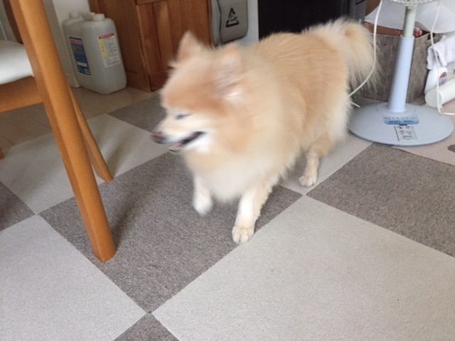 回り方がドタドタしていて、、、きっと、小さいポメの3回転がモクちゃんの1回転くらいな感じだろうと思うのですが、大きい体で喜びいっぱいのパフォーマンスを見ていると、毎日の事ながら、とっても微笑ましいです(*^_^*)