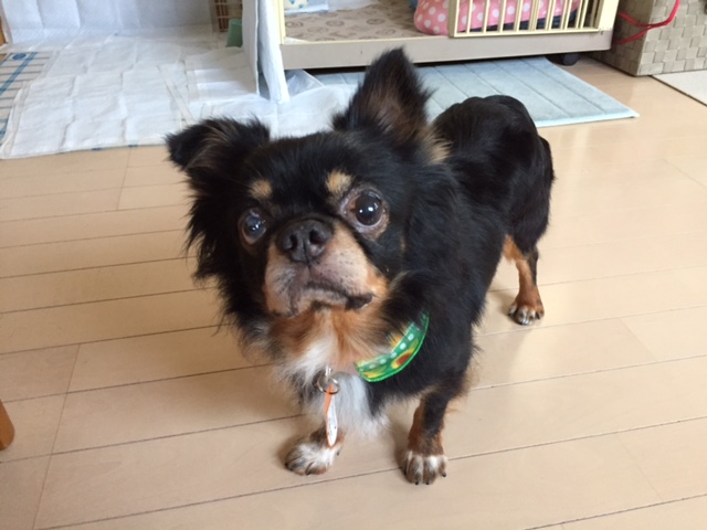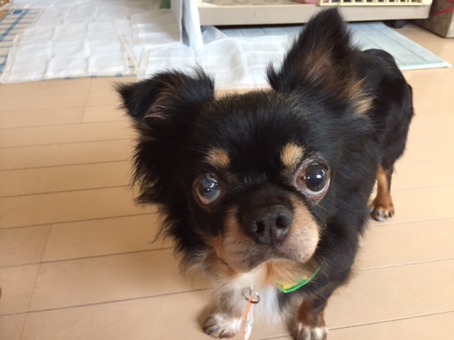 ちょっと離れた先から、鋭いまなざしでみつめる先住犬のくるみちゃん。