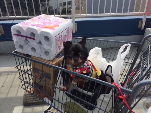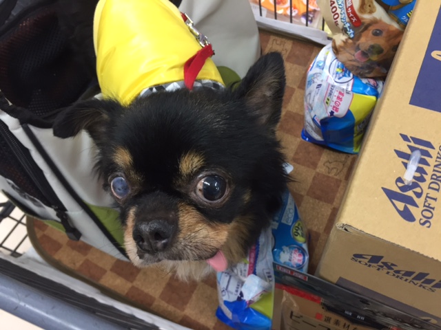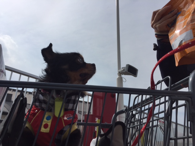 まだまだお散歩で歩けないチャイたんに、少しずつ外の雰囲気を味わってもらおうと、ホームセンターへ連れていきました。