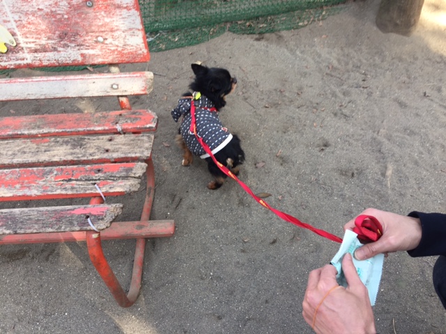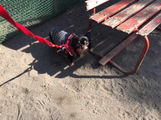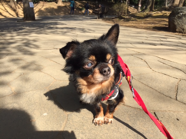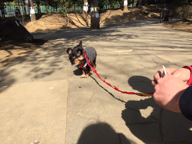 週末は、寒さもゆるんでお日様も出ていたので、チャイを連れて近くの公園へ。