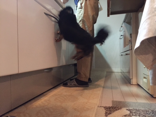 何か食べてるのを見つかると、「ください!」のアクション