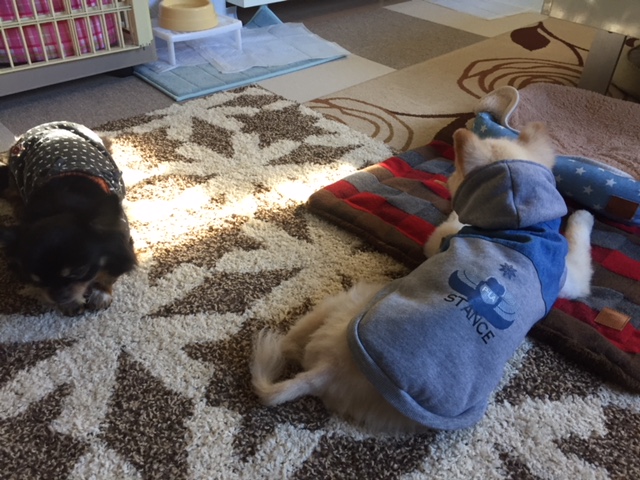 自分たちが食べ終わると、相変わらず食卓をマークする2ワン。