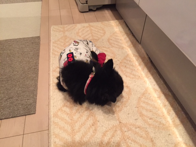 チャイさん、キッチンマットでお昼寝しているわけではありません。