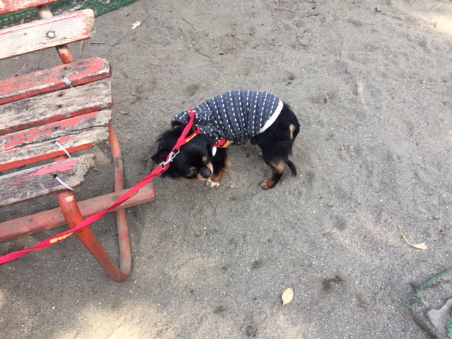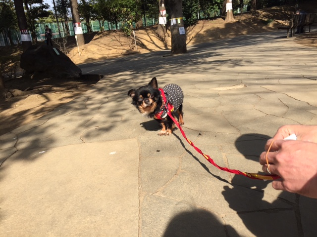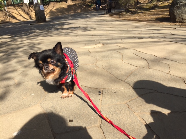 週末は、寒さもゆるんでお日様も出ていたので、チャイを連れて近くの公園へ。