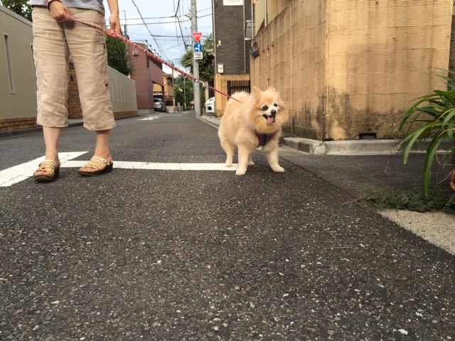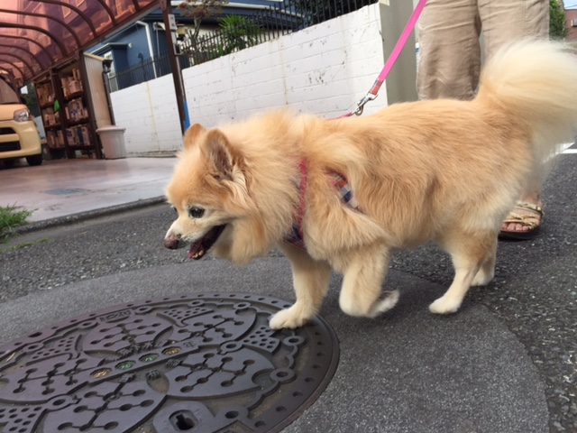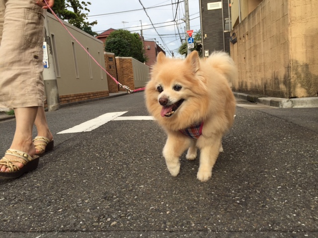 平日は、オジチャンが連れていってくれるのですが、朝から雨が降っている日、一瞬あがったすきに散歩に出て、家に戻るとザーっと降りだす、こんなのがしょっちゅうだそうです。