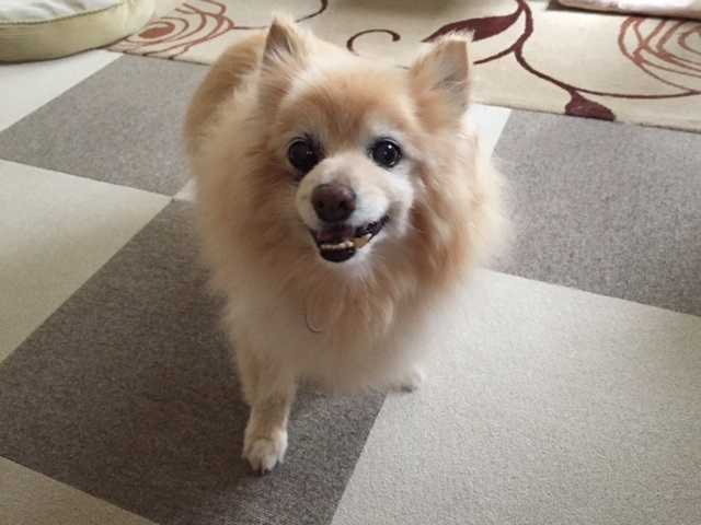 回り方がドタドタしていて、、、きっと、小さいポメの3回転がモクちゃんの1回転くらいな感じだろうと思うのですが、大きい体で喜びいっぱいのパフォーマンスを見ていると、毎日の事ながら、とっても微笑ましいです(*^_^*)