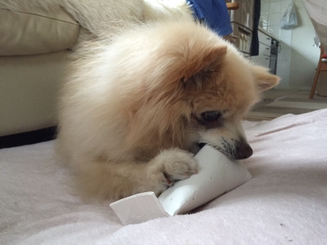 私が数日家をあけている間、マメなオジチャンはモクちゃんのオヤツ作り(--;