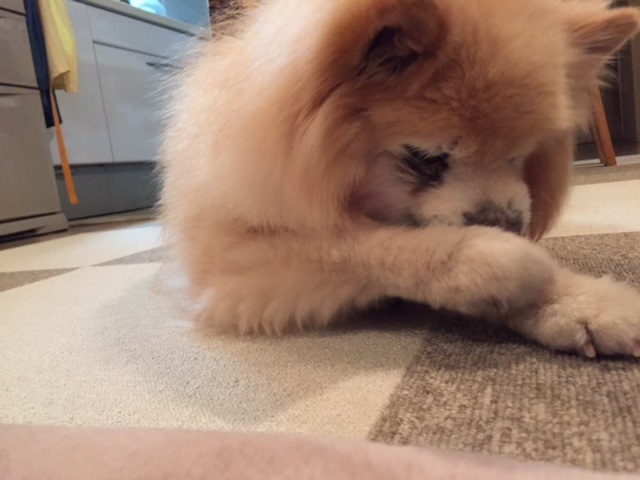 お耳が遠いので、コマンドじゃなくって、お手くださいの動作でヒョイってお手々を手のひらにのせてくれます。