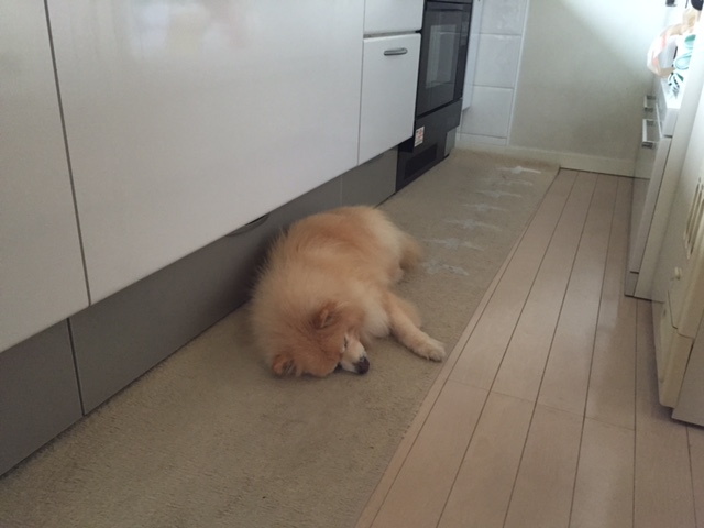 ちなみに、キッチンの下は、すっかりモクちゃんの定位置になっていて、気が付けば夜もここで寝てたりします(^_^;