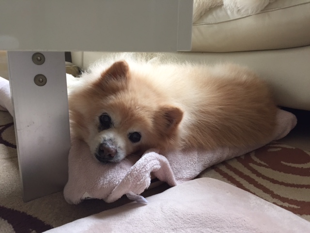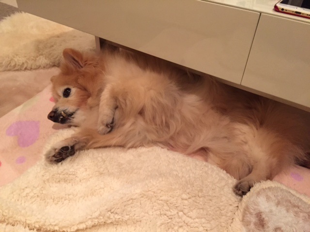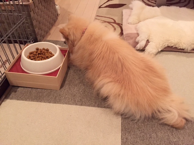 まさか、7kg以上のデカポメが二本足になってお皿をのぞき込むなんて夢にも思わず・・・しかも足腰弱いんじゃないかと思ってたのに。