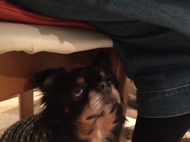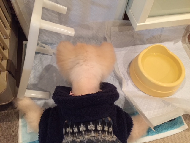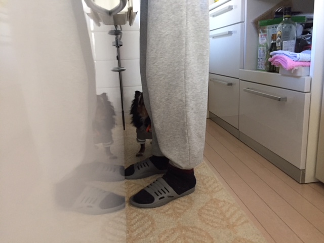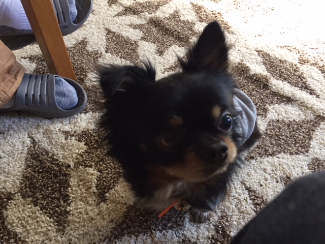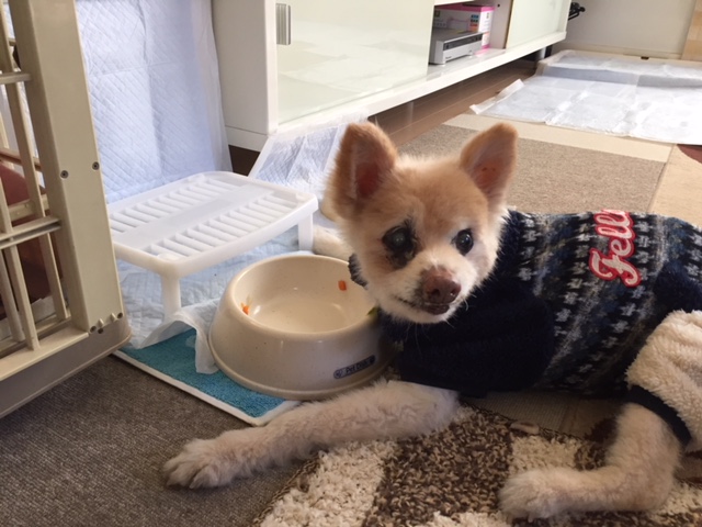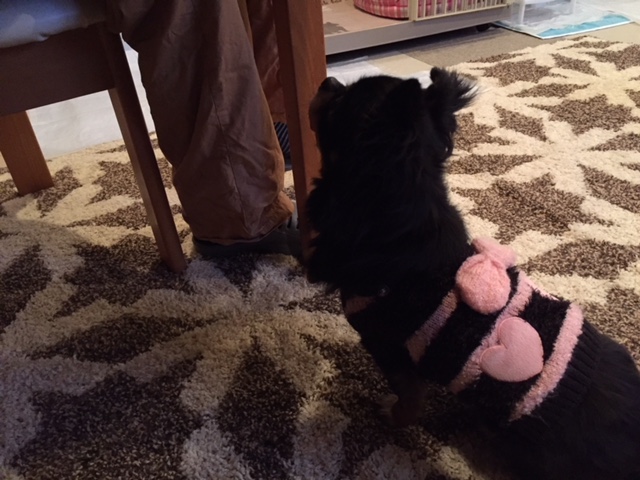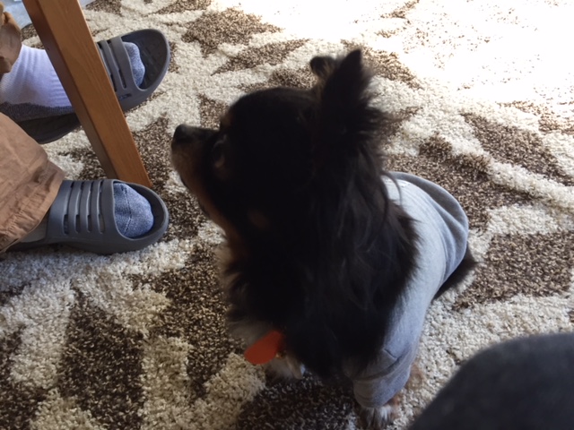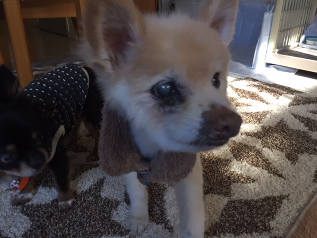 もくちゃんは、あまり見えてないので匂いの元がどこなのか探しています。