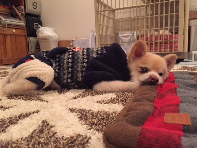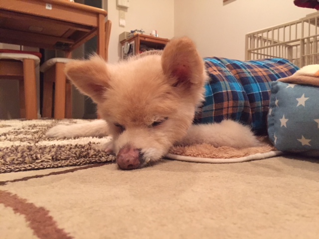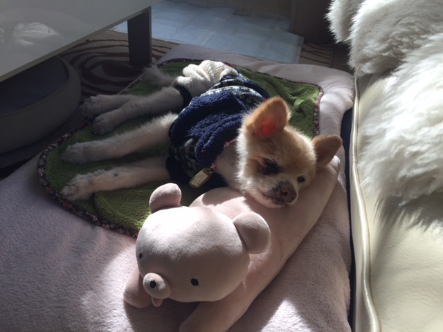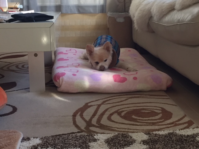 もくちゃん滞在中はもくちゃんのおやすみポイントの長座布団でしたが、