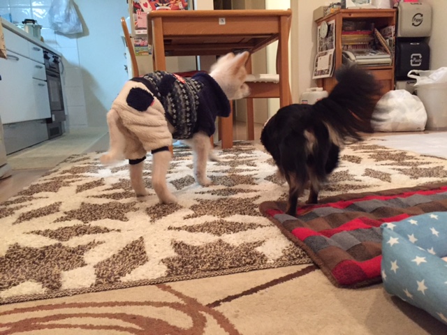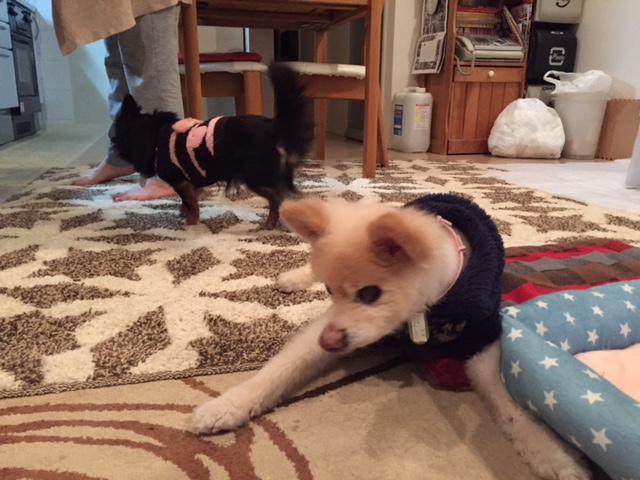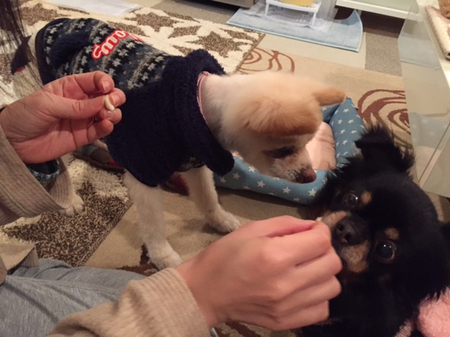 でも、もくちゃんが口から落としたジャーキーを素早くくわえて逃げたのは、減点5点ね~